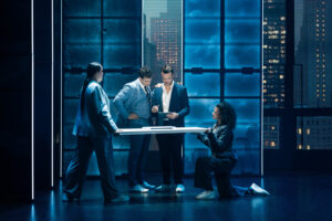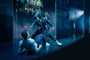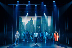 Die Anforderungen an das Bühnenbild einer Tour-Produktion sind hoch. Es muss beeindruckend wirken, aber gleichzeitig schnell auf- und abbaubar, also zweckmäßig sein. Diese Inszenierung löst diesen Spagat auf beeindruckende Weise. Die Zweckmäßigkeit führt hier nicht zu Reduktion, sondern zu einer sehr großzügigen Anlage. Die Bühne nutzt eine intelligente Kombination aus physischen Kulissen und großflächigen LED-Projektionen. Anstatt sich in statischen Bauten zu verlieren, wirken die Kulissen fluide und dynamisch. Die LED-Technik ermöglicht es, Schauplätze wie das New Yorker Apartment, die düsteren Gassen oder die U-Bahn-Schächte gekonnt und schnell veränderbar zu visualisieren. Die verschiebbaren, bühnenhohen und damit den Hintergrund verdeckenden Elemente ermöglichen nicht nur die schnelle Visualisierung von Todesszenen mit aufsteigenden Seelen, sondern gestatten ebenso schnelle Kostümwechsel auf der Bühne, ohne diese ins Blickfeld des Publikums zu rücken. Besonders in den Momenten, in denen Sam zwischen der Welt der Lebenden und der Toten wechselt, spielt auch das Lichtdesign eine entscheidende Rolle. Die fließenden Übergänge und die spektakulären visuellen Effekte, sei es die Illusion, wenn Sam Gegenstände durchdringt oder wenn er durch Wände geht, sind technisches Highlight und wichtiger Erzählstrang zugleich. Man merkt, dass hier nicht gespart, sondern intelligent investiert wurde, um die Illusion der Magie und des Übernatürlichen glaubwürdig zu vermitteln. Die Bühne wirkt trotz ihrer Reisegestalt nie beengt, sondern strahlt im Gegensatz eher Größe aus.